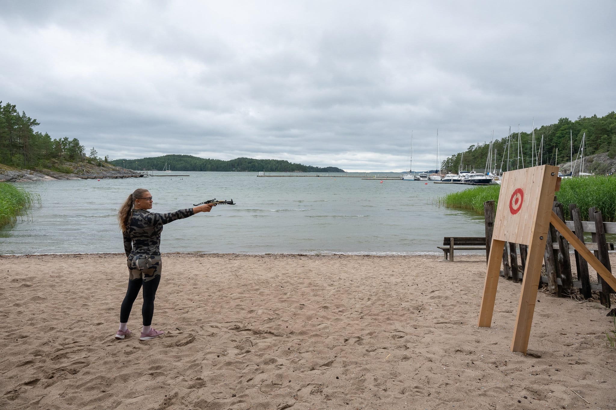 Du kan testa din hand-ögon-koordination med en blåsrör. En riktig viking kan också prova den populära yxkastningen.